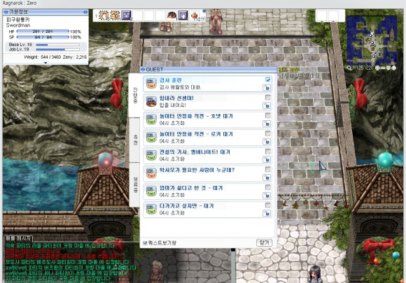 퀘스트 하나는 검사길드 에칼토와 대화하라는 것 외에는 그냥 마을 옆 꼬맹이 들이 주는 반복 퀘 인데