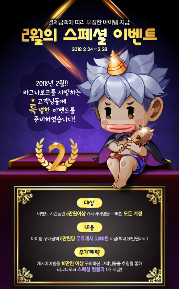 다른 게임들은 캐시백 50%까지도 해주고 상품도 전원 지급하는데 라그는 5만원 결제시 겨우 10% 캐시백에 텀블러 하나를 추첨으로 지급.