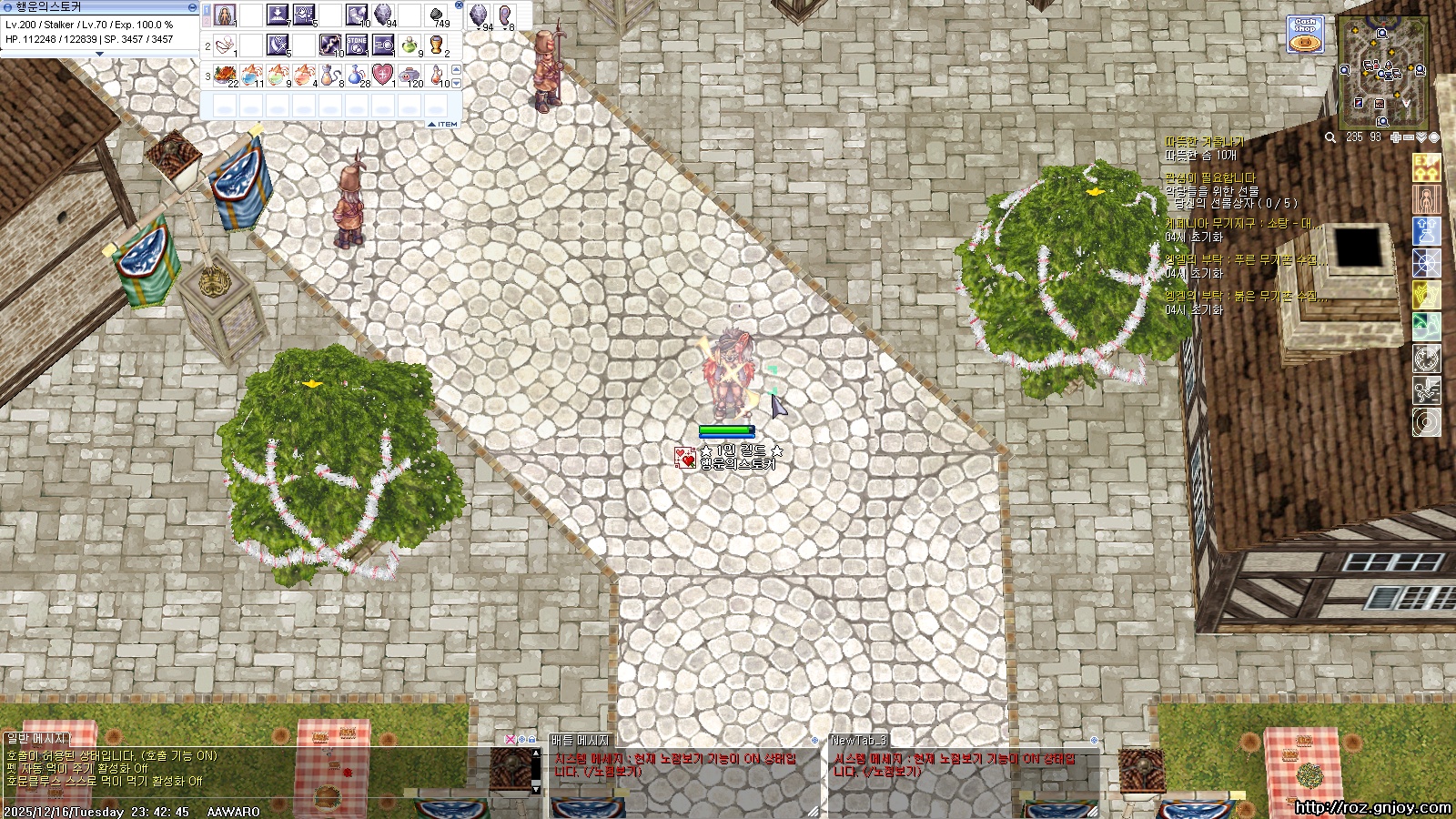 양쪽에 크리스마스 트리 나무 있는곳에서 파티하면 어떨까?